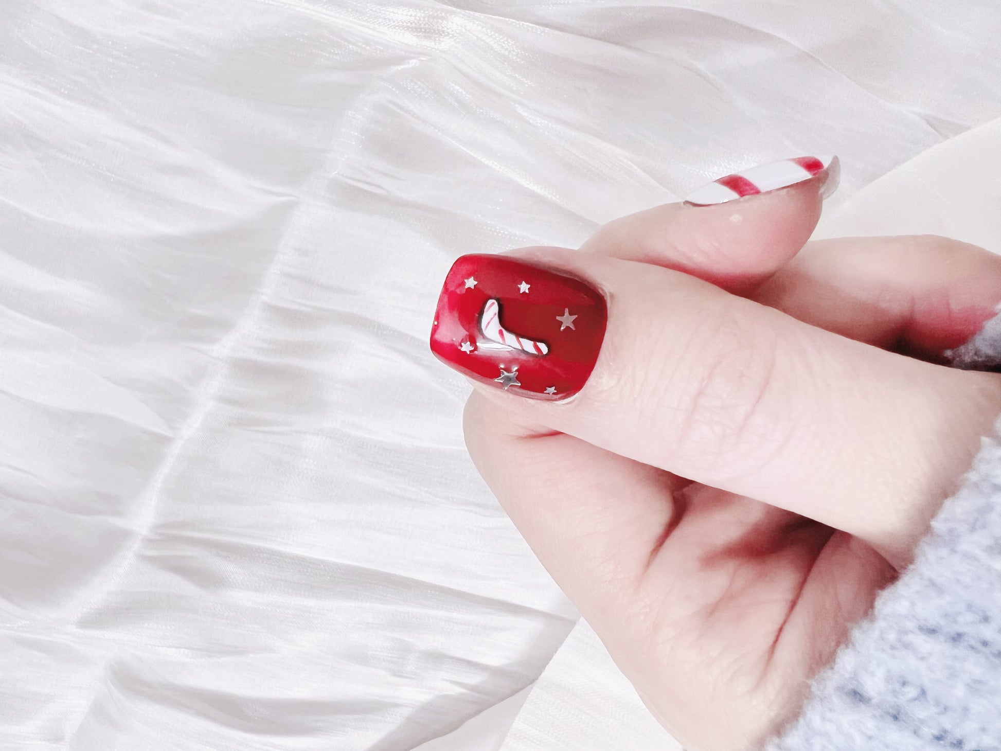 Christmas Press On Nails Red Snowflake Heart Candy Cane Nails